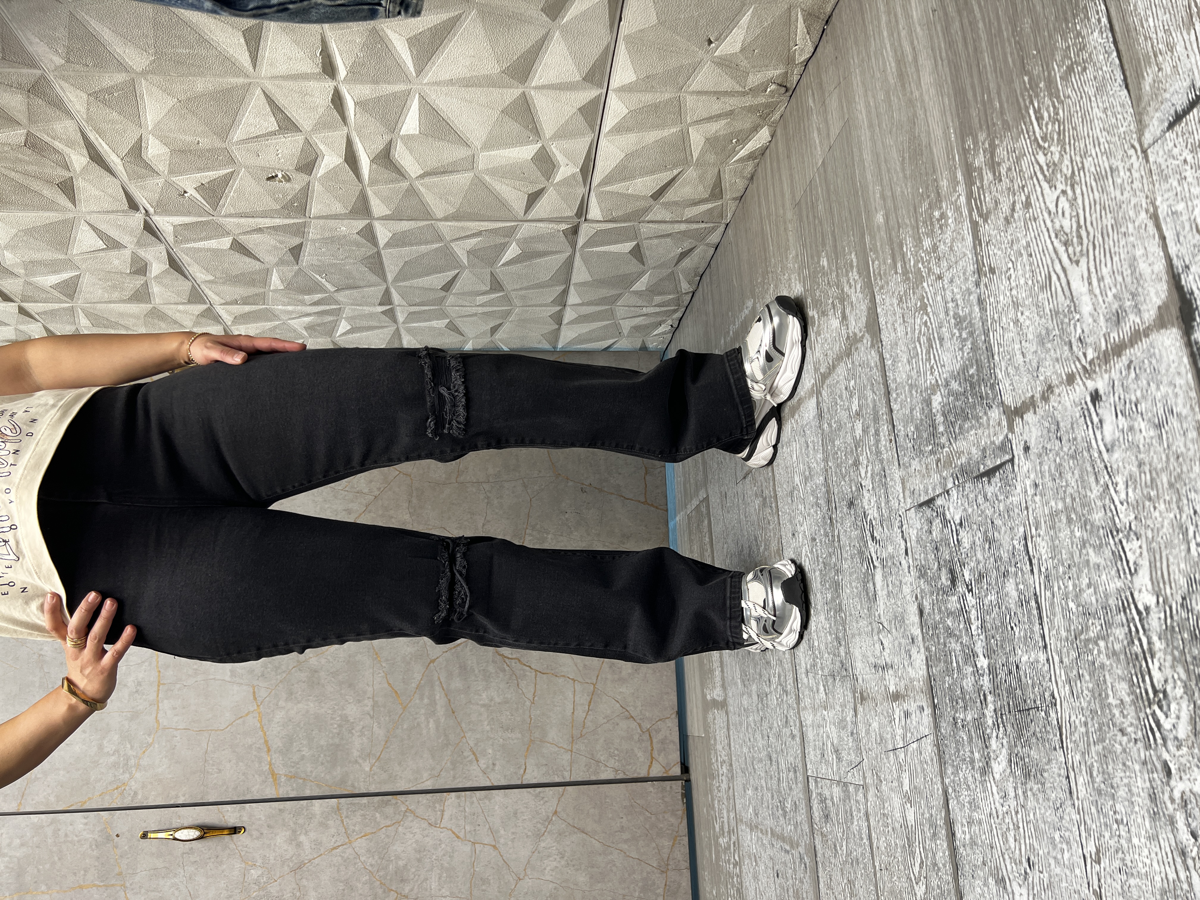 شلوار جین زنانه دمپا گازویئلی کثیف قد ۱۰۵ کد ۱۴۰۴۳۳۳