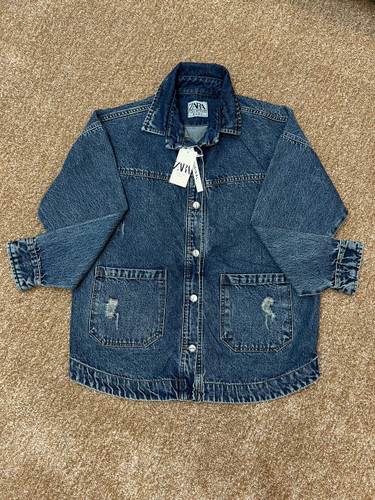 کت جین زنانه زاپدار آبی تیره شست کرم