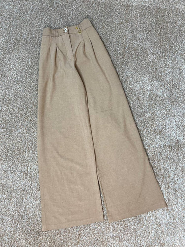 شلوار زنانه پارچه ای فول بگ کرم بزایاق درجه یک قد ۱۱۰
