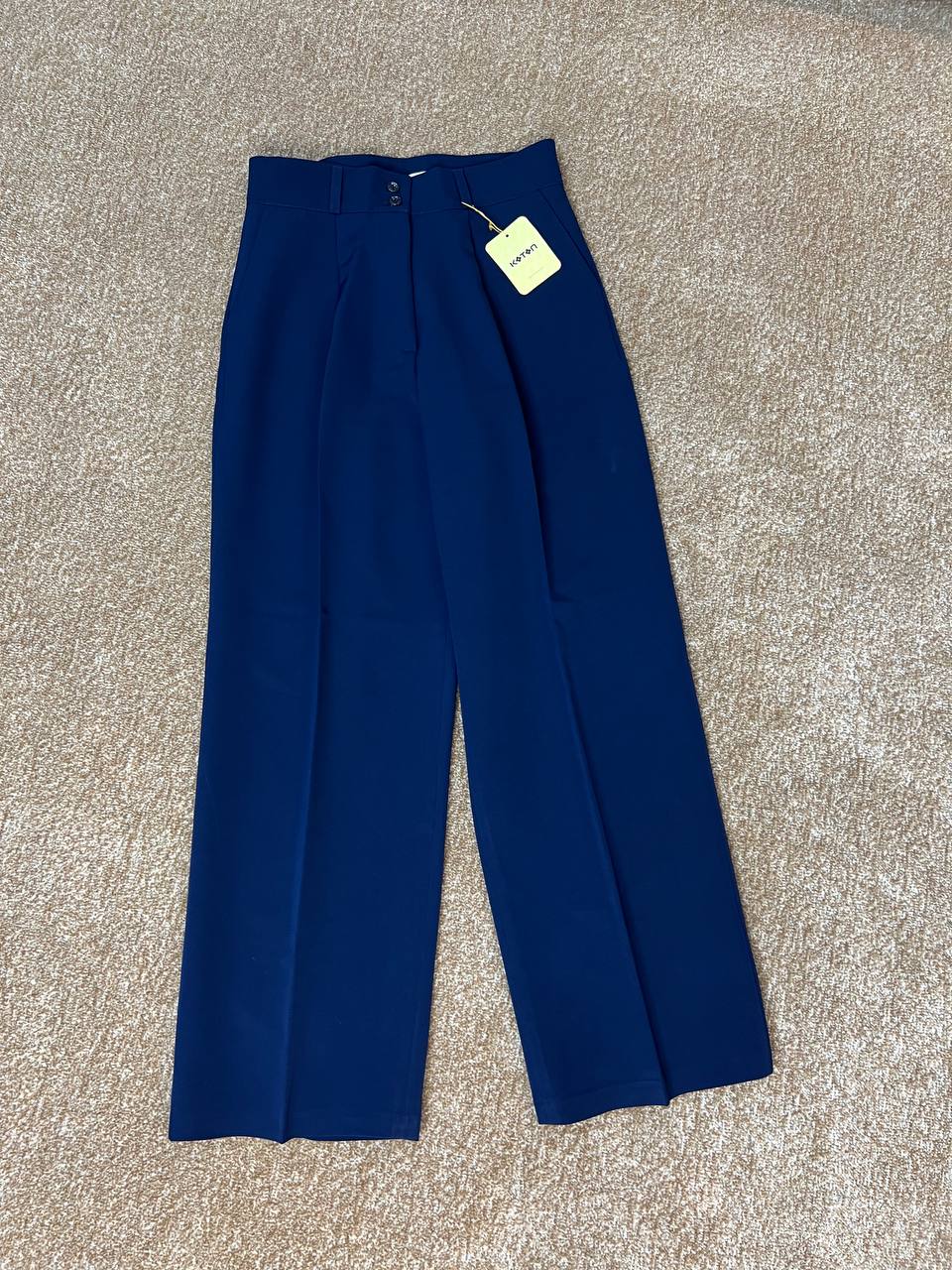 شلوار زنانه پارچه ای فول بگ سرمه ای کرپ مازراتی درجه یک گرم بالا قد ۱۱۰