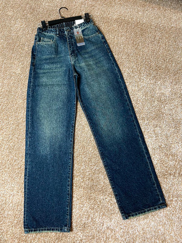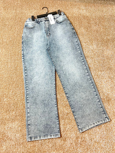 ناموجودشلوار جین زنانه نیم بگ آبی کثیف سایز بزرگ قد ۱۰۵ کد ۱۴۰۴۳۲۱