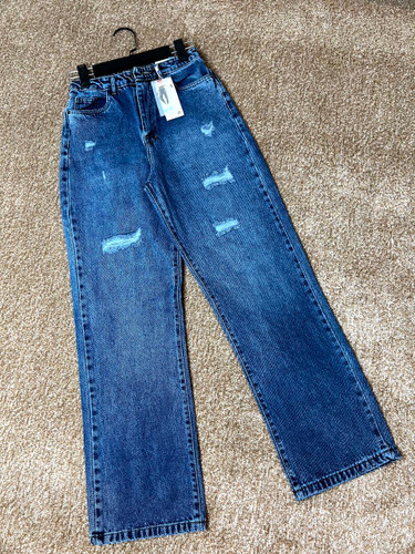 شلوار جین زنانه نیم بگ آبی تیره شست یخی