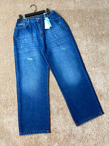ناموجودشلوار جین زنانه مدل نیم بگ آبی دریایی سایز بزرگ قد ۱۰۵ کد۱۴۰۴۴۲۷