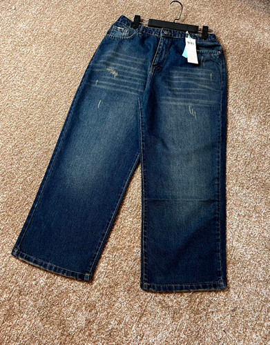 ناموجودشلوار جین زنانه نیم بگ آبی تیره