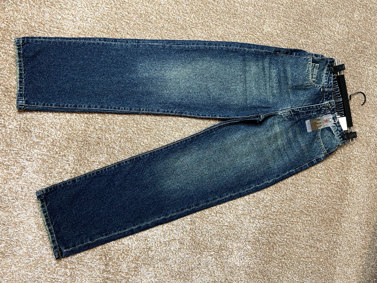 ناموجودشلوار جین زنانه نیم بگ آبی تیره شست کرم قد ۱۰۵ کد۴۰۳۱۲۴