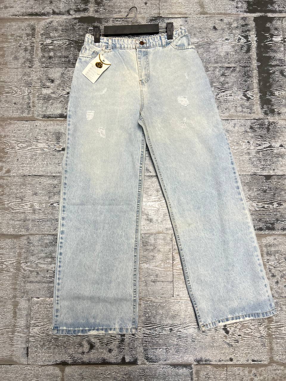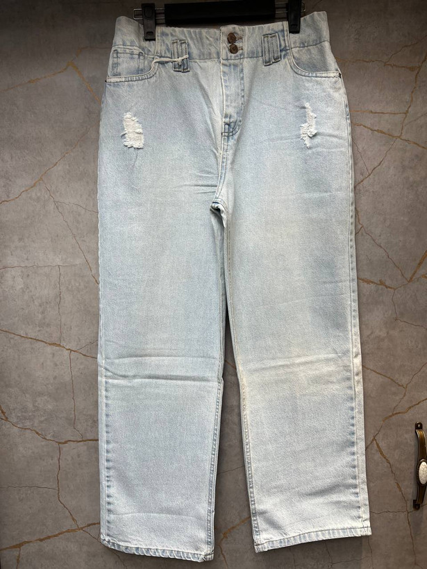 شلوار جین زنانه نیم بگ زاپدار یخی قد ۱۰۵ کد ۴۵۲۳
