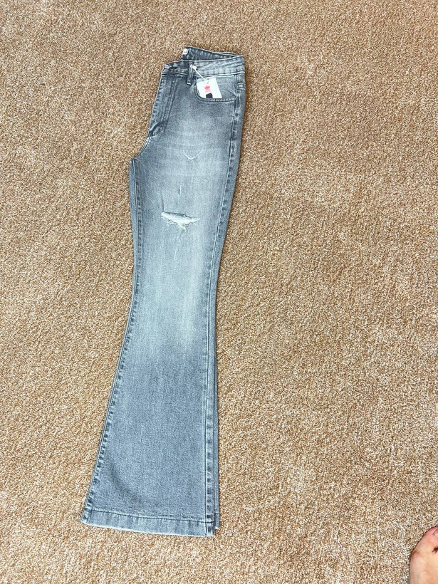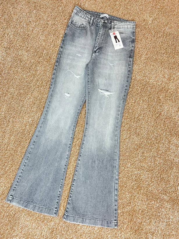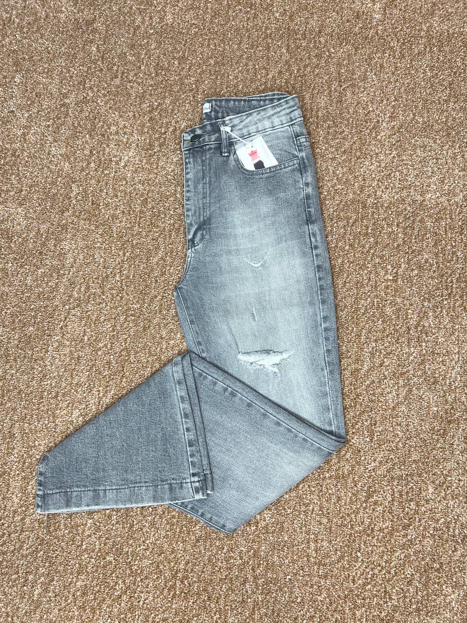 شلوار جین زنانه دمپا طوسی زاپدار قد ۱۰۵ کد۴۰۳۱۲۵۹