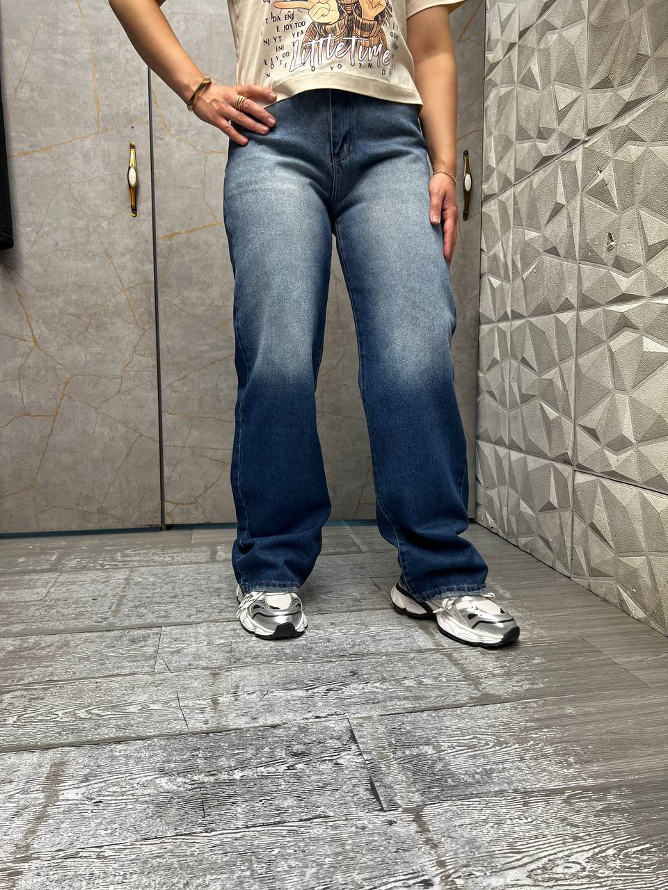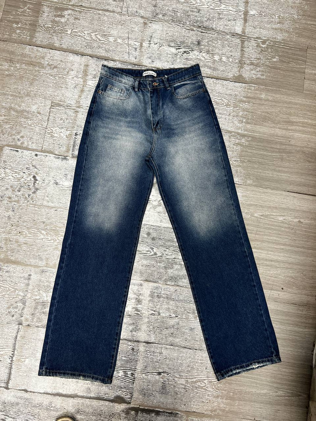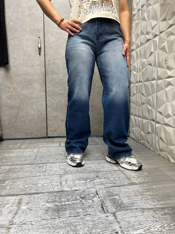 شلوار جین زنانه نیم بگ آبی تیره شست یخی
