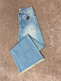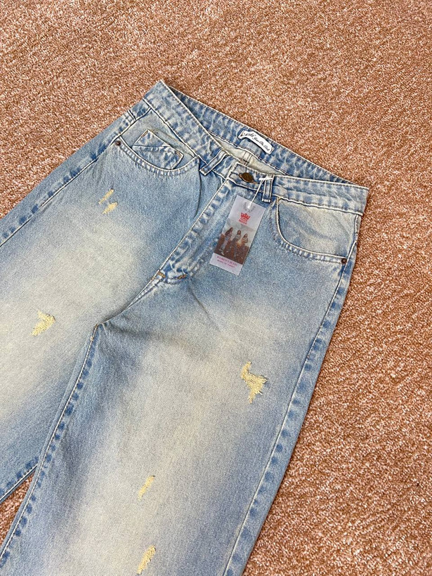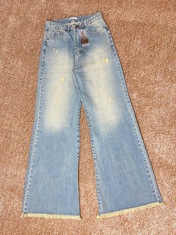 شلوار جین زنانه فول بگ آبی وسط پایین ریش قد ۱۱۰ کد ۴۰۳۱۱۶۶