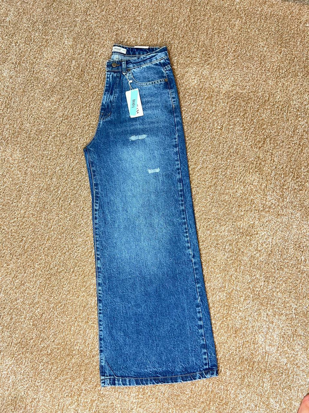 شلوار جین زنانه فول بگ آبی دریایی قد ۱۱۰ کد ۱۴۰۴۲۱۷