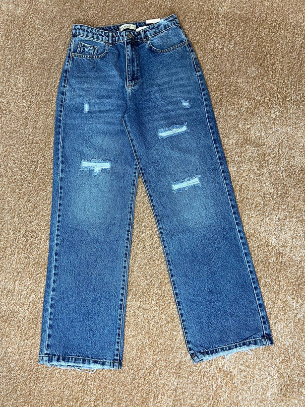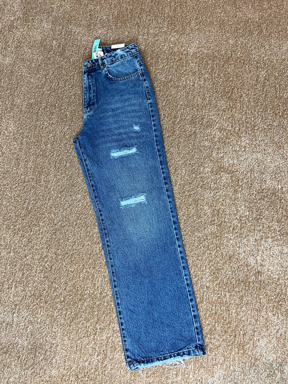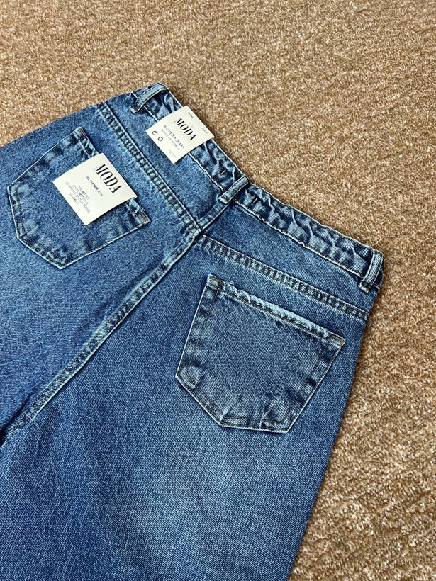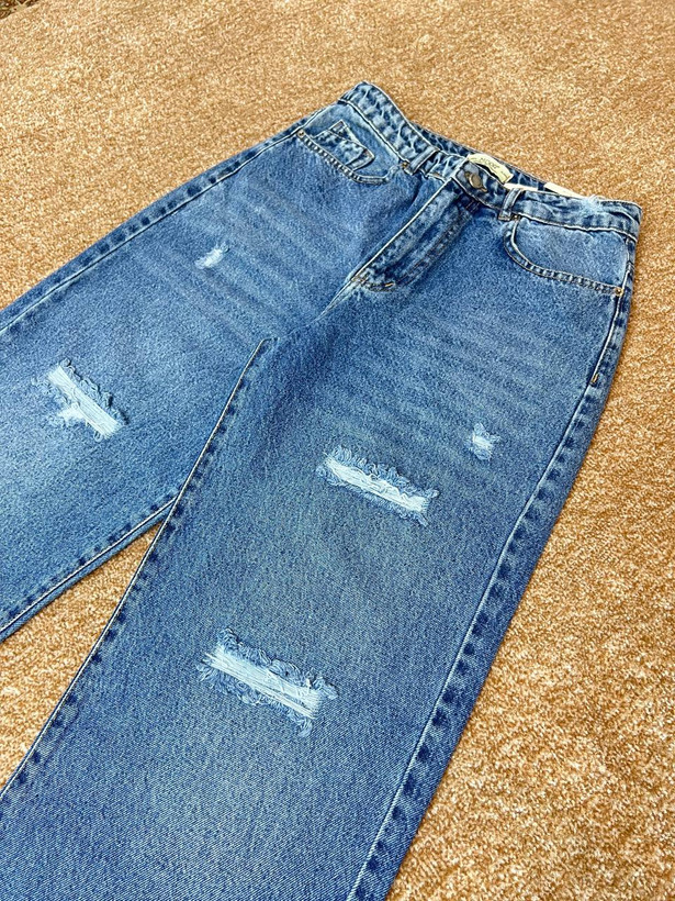 شلوار جین زنانه مدل نیم بگ آبی وسط قد ۱۱۰ کد ۱۴۰۴۱۴۸
