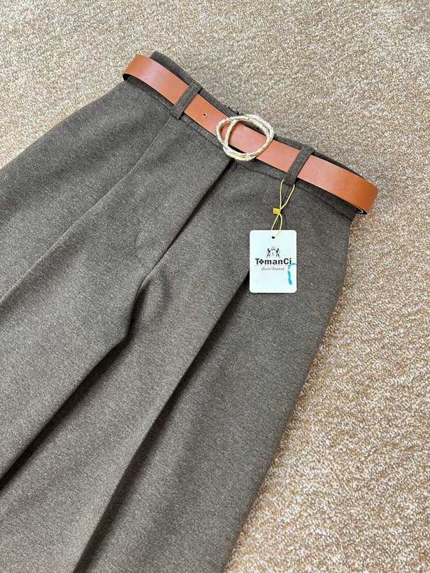 شلوار زنانه مدل فول بگ جنس لامر رنگ قهوه ای قد ۱۱۰