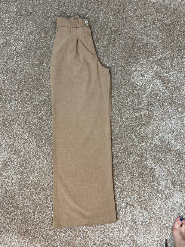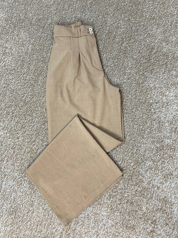شلوار زنانه پارچه ای فول بگ کرم بزایاق درجه یک قد ۱۱۰