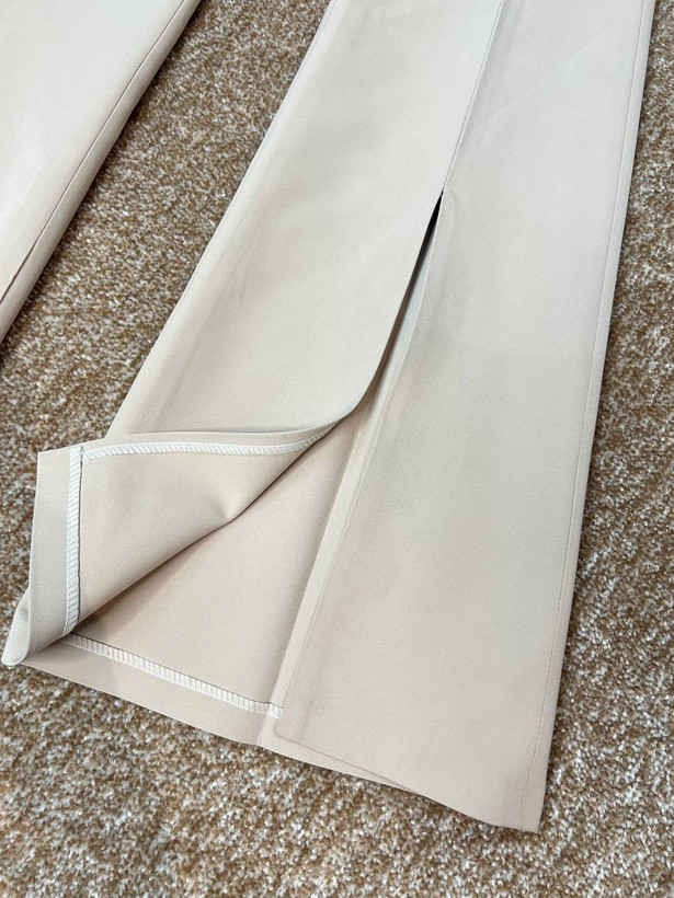 شلوار زنانه پارچه ای دمپا اسپانیش جلو چاکدار کرم کرپ مازراتی درجه یک گرم بالا قد ۱۱۰