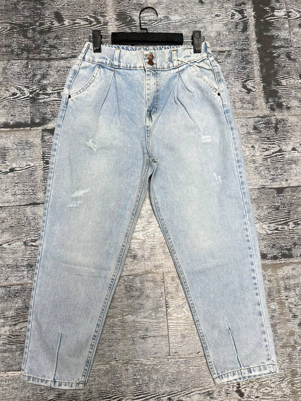شلوار جین زنانه مدل مام فیت یخی دو دکمه قد ۹۰ کد ۵۷۷۱