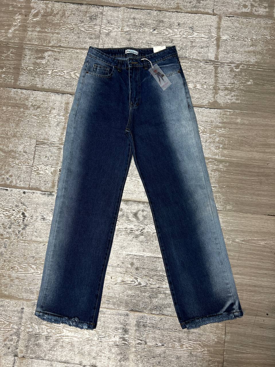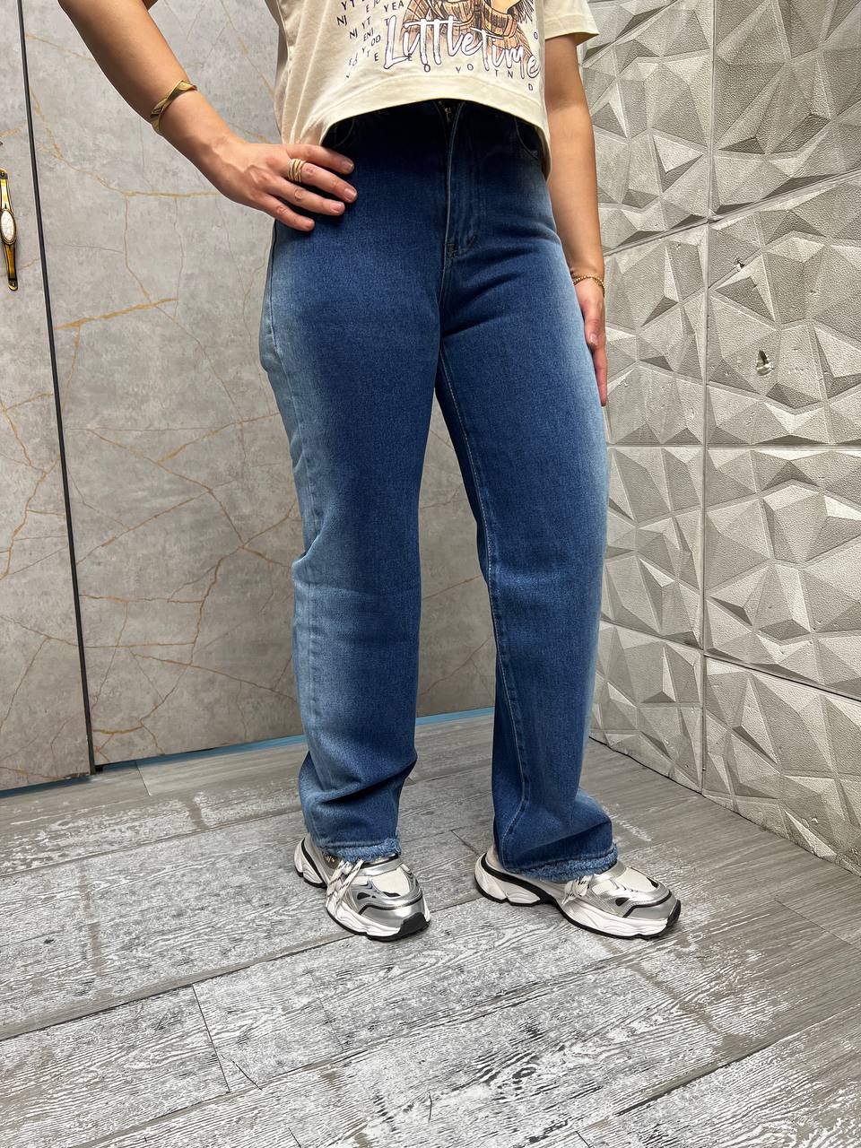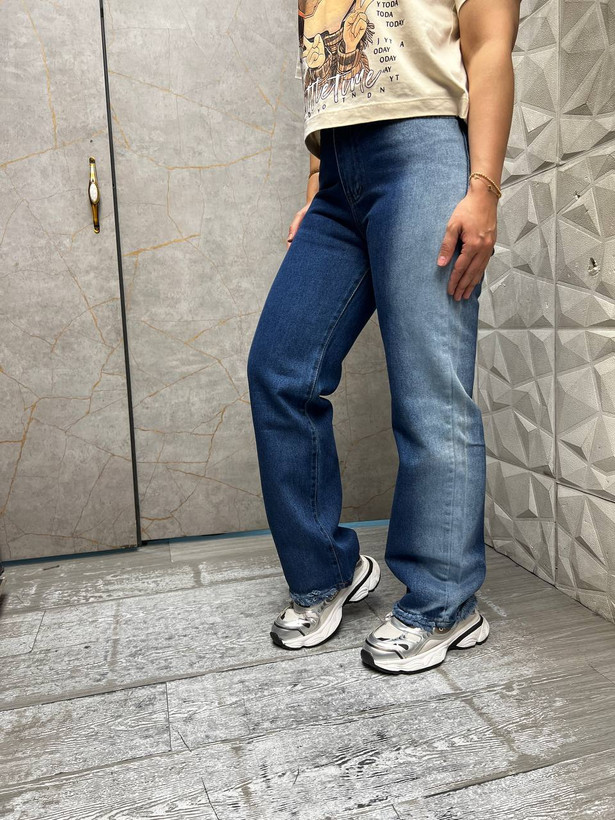 شلوار جین زنانه نیم بگ آبی بغل رادو