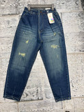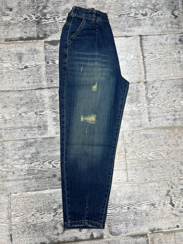 شلوار جین زنانه مدل مام فیت آبی تیره شست گازویئلی قد ۹۰ کد ۴۰۳۷۱۶