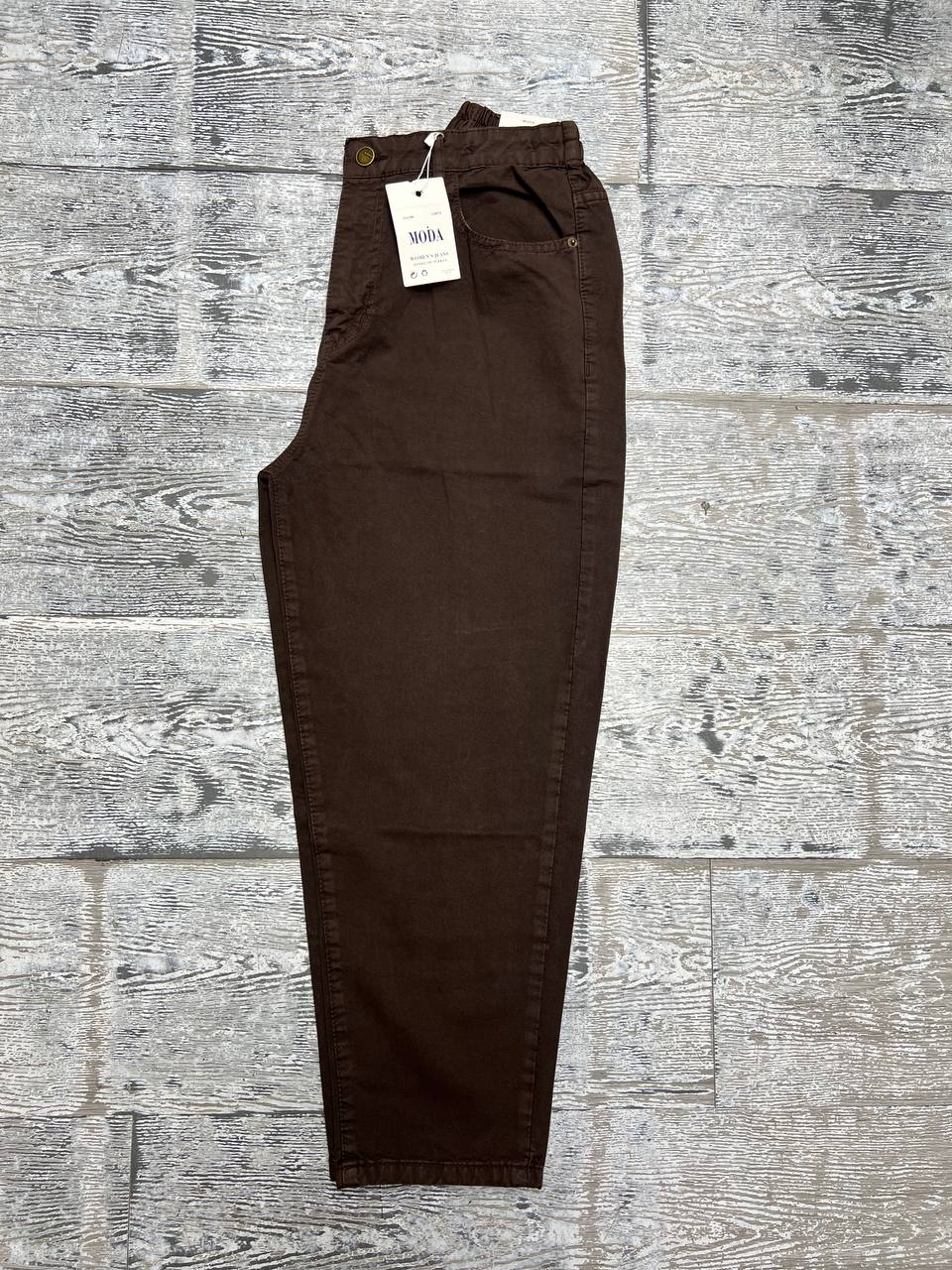 شلوار کتان زنانه مدل مام فیت قهوه ای قد ۹۰ کد ۴۰۳۴۱۸