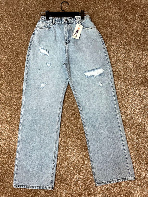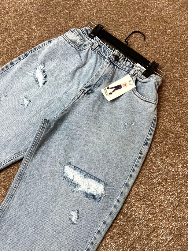 شلوار جین زنانه مدل نیم بگ یخی زاپدار قد ۱۱۰ کد ۴۰۲۱۱۹۲