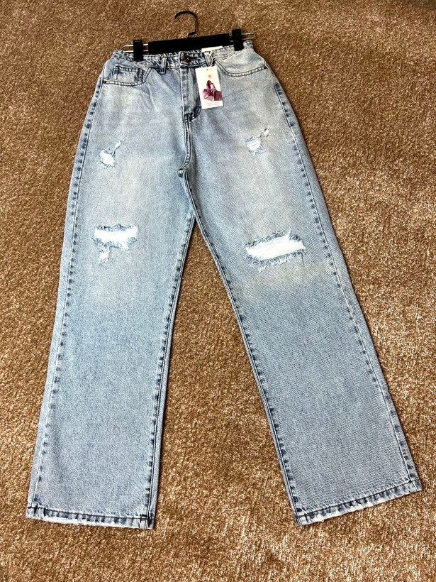 شلوار جین زنانه مدل نیم بگ یخی زاپدار قد ۱۱۰ کد ۴۰۲۱۰۳۴