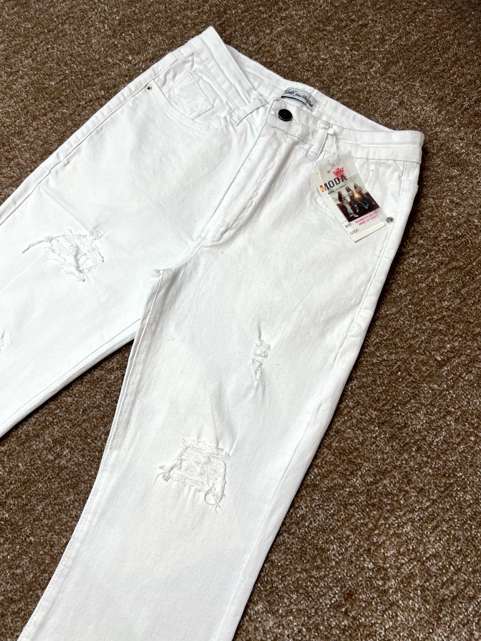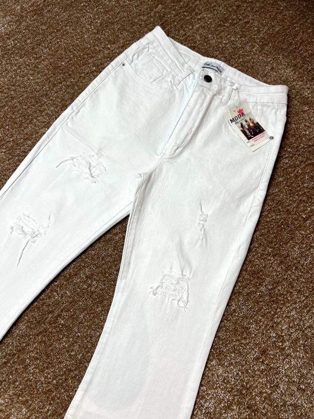 شلوار جین زنانه مدل دمپا سفید زاپدار قد ۱۱۰ کد ۴۰۳۱۳۷۲