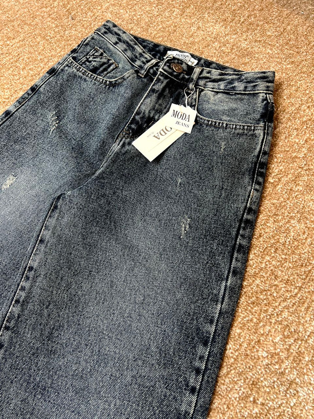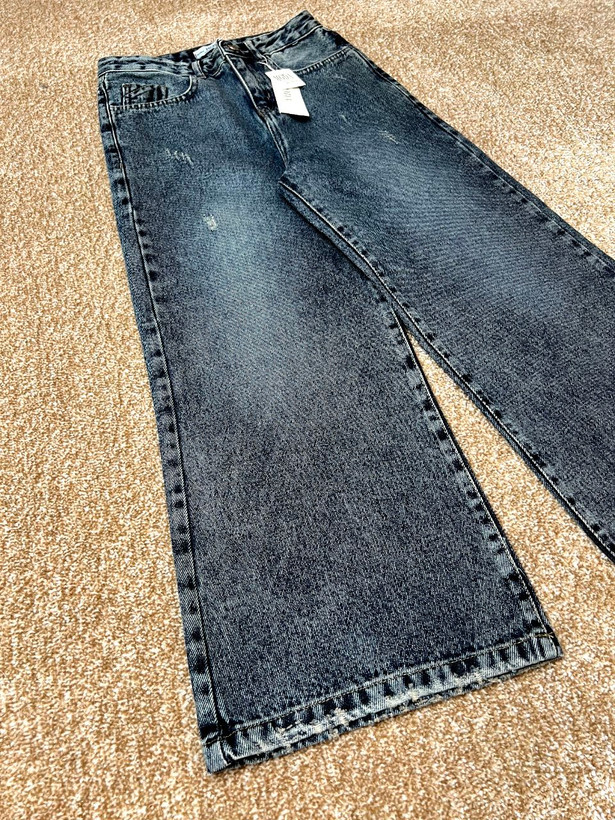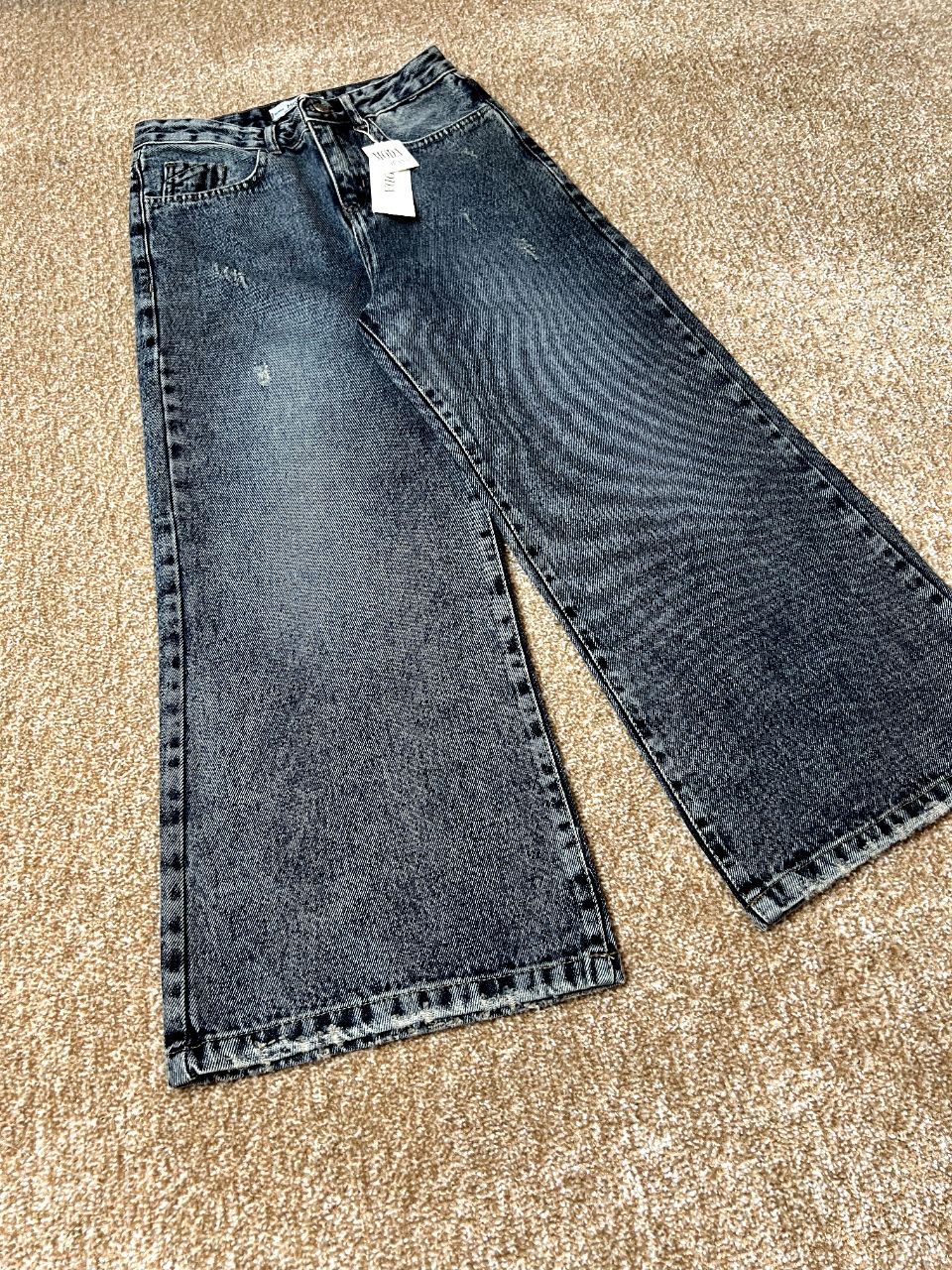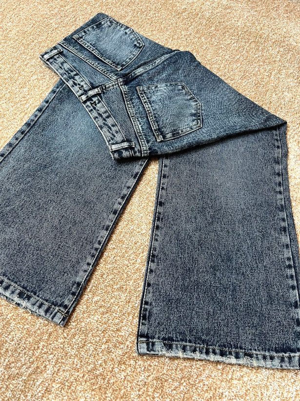 شلوار جین زنانه مدل واید لگ آبی کثیف سنگ شور قد۹۰ کد۱۴۰۴۳۲۹