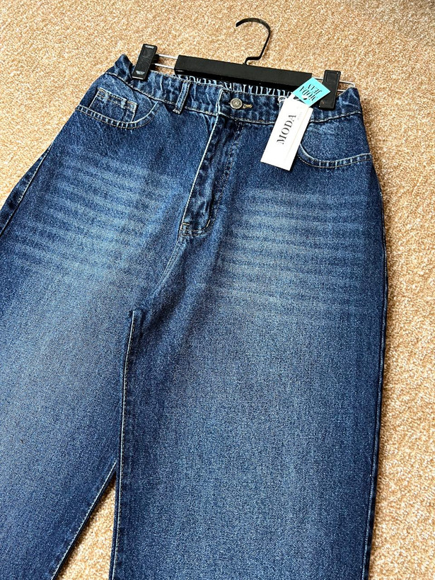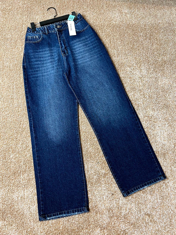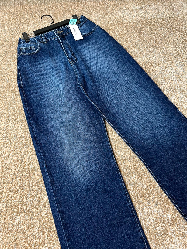 شلوار جین زنانه مدل نیم بگ آبی تیره رادو سایز بزرگ قد ۱۰۵ کد۱۴۰۴۴۲۹