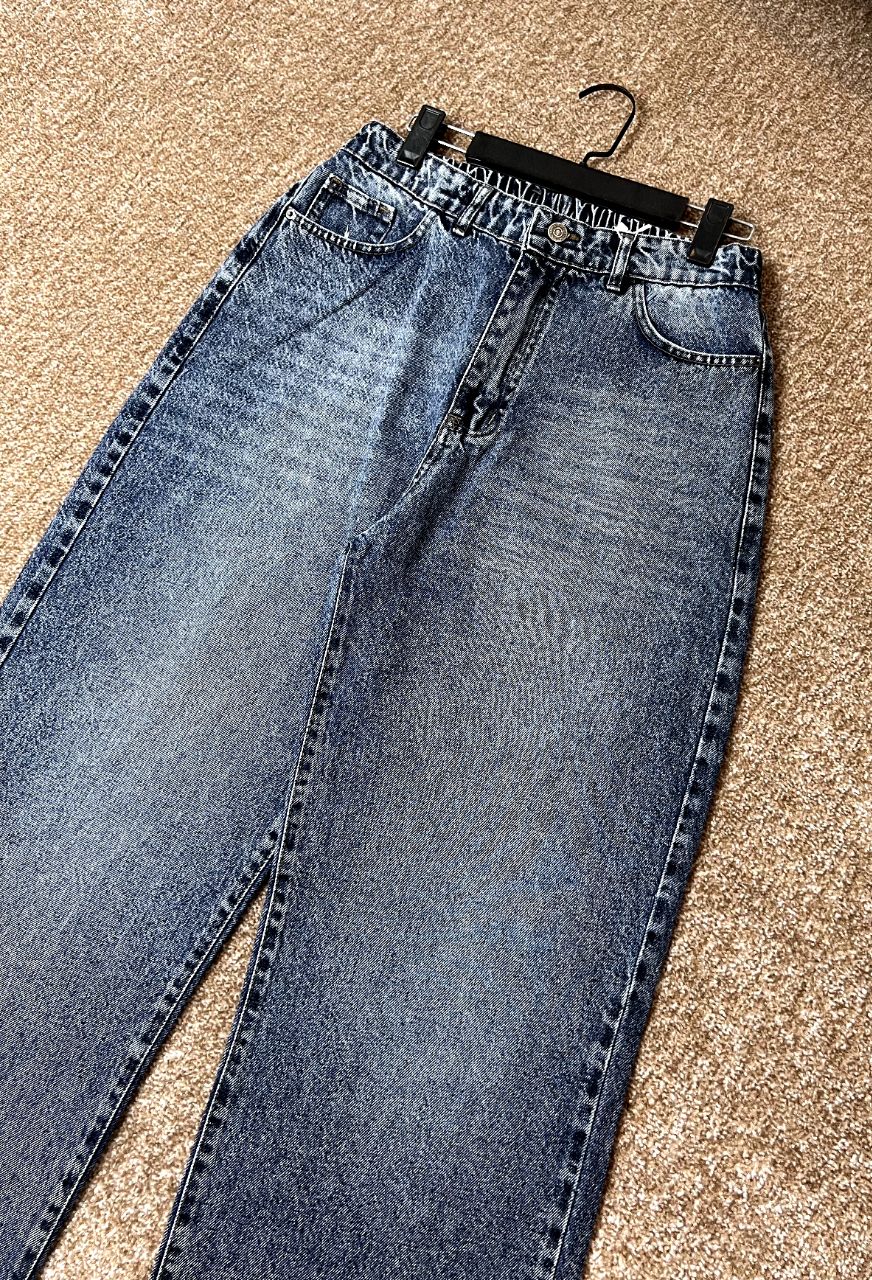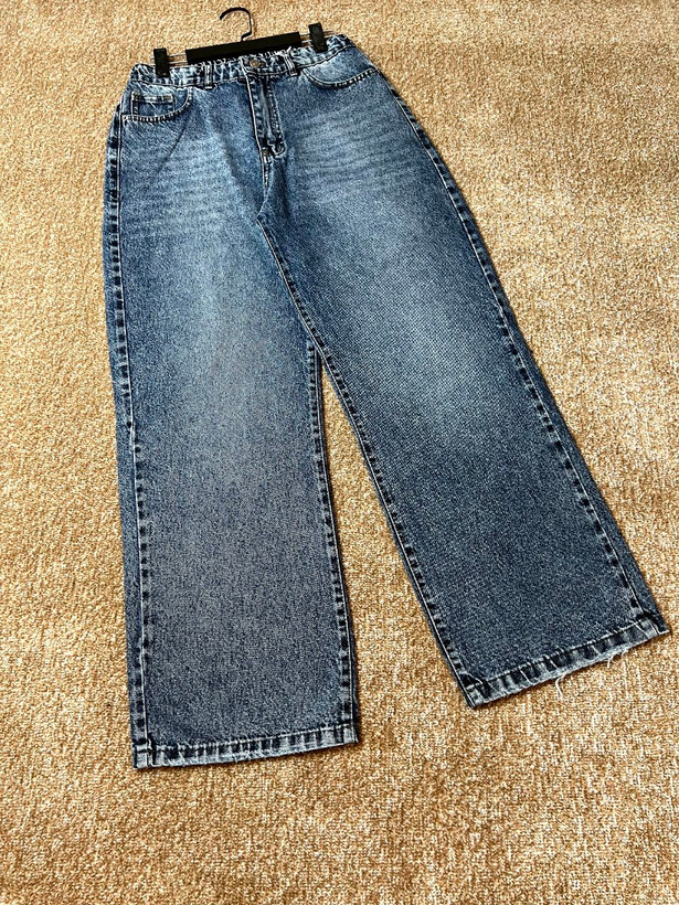 شلوار جین زنانه مدل نیم بگ آبی دریایی سایز بزرگ قد ۱۰۵ کد۱۴۰۴۴۲۷
