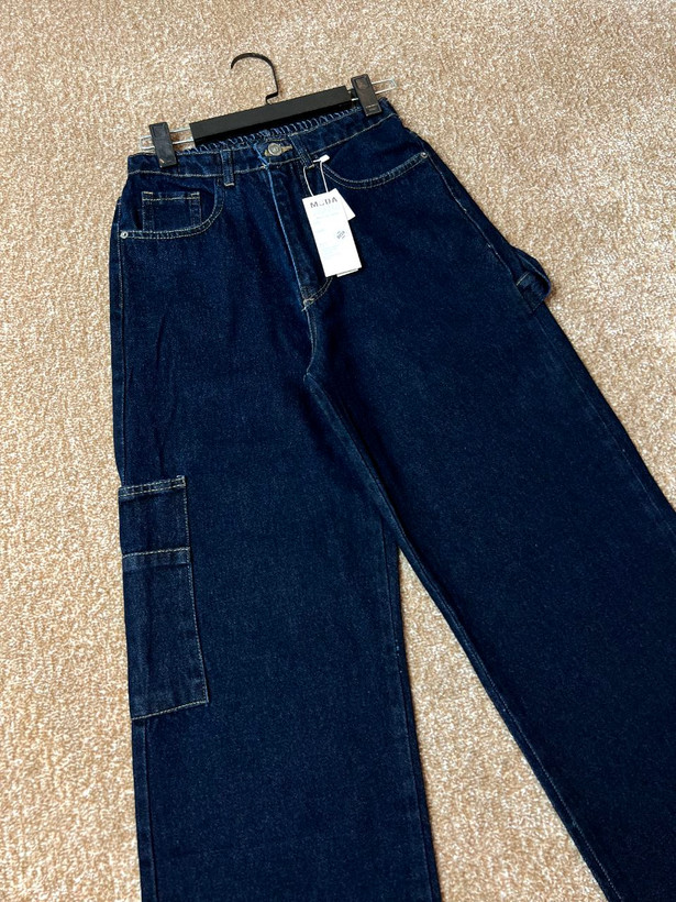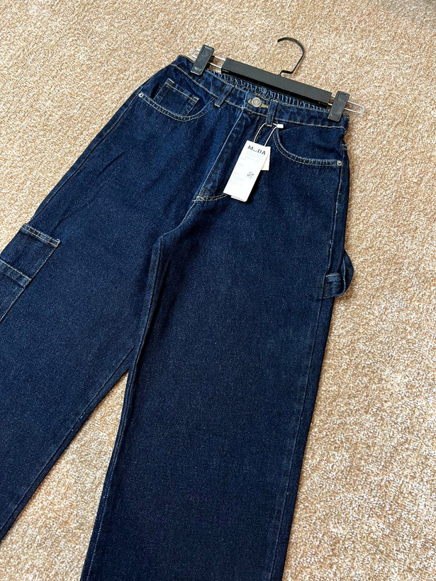 شلوار جین زنانه مدل بگی پینترس سرمه ای شست خام قد ۱۱۰ کد۱۴۰۴۳۸۳