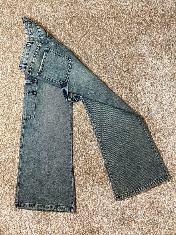 شلوار جین زنانه مدل بگی پینترس آبی شست کرم قد ۱۱۰ کد۱۴۰۴۳۷۷