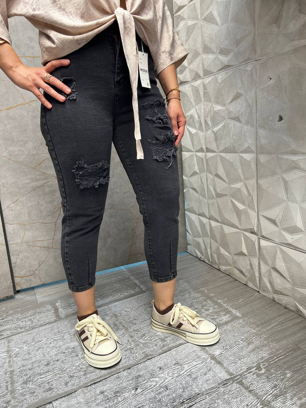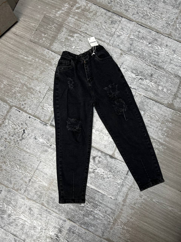 شلوار جین زنانه مام فیت زغالی زاپدار ۳ درصد کش