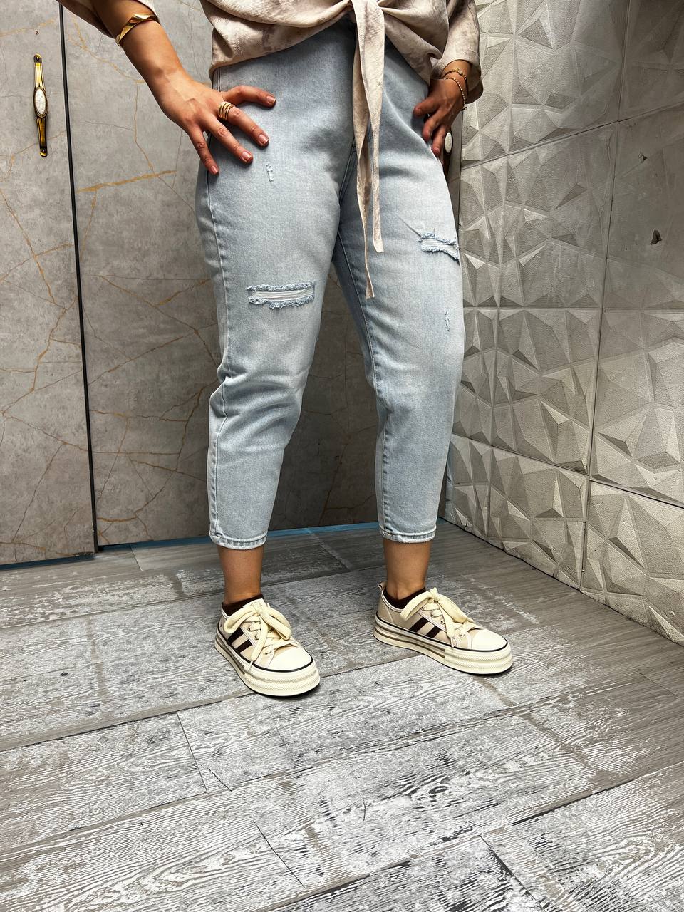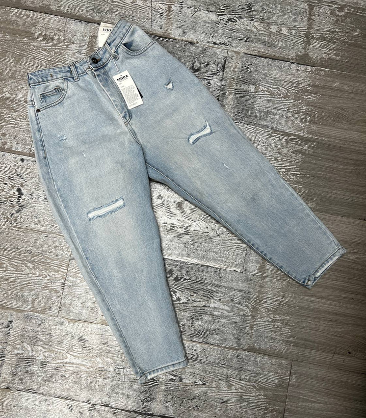 شلوار جین زنانه مام فیت یخی زاپدار