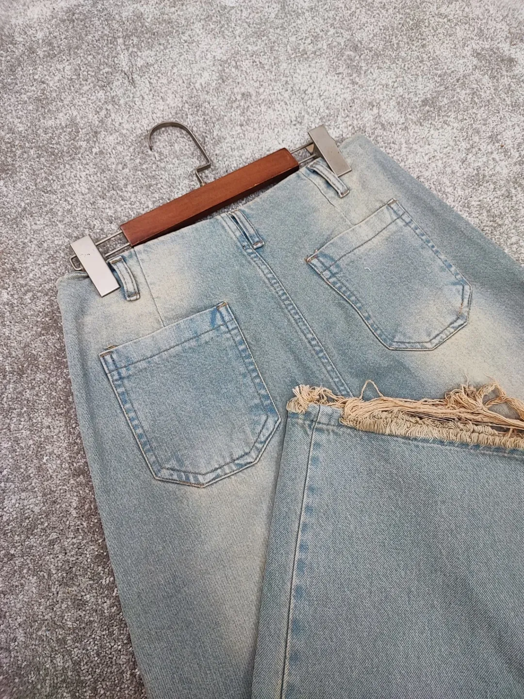 شلوار جین زنانه واید لگ یخی قد ۹۰